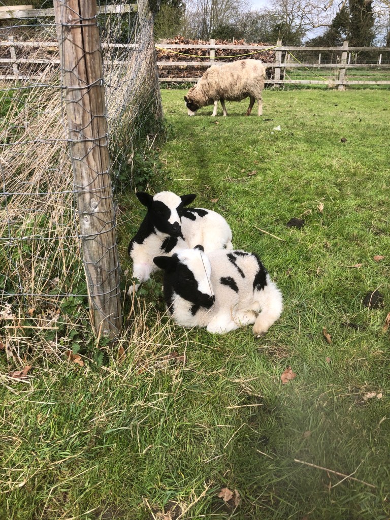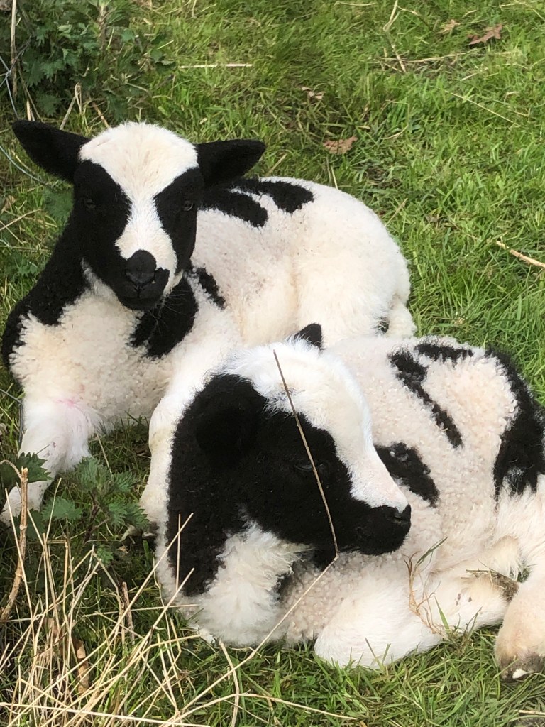 Poddy and Spotty were waiting for their bottles but I needed to go into the field to find Dotty. I found her snuggled up with the very youngest lamb, Spot’s son Sammy.