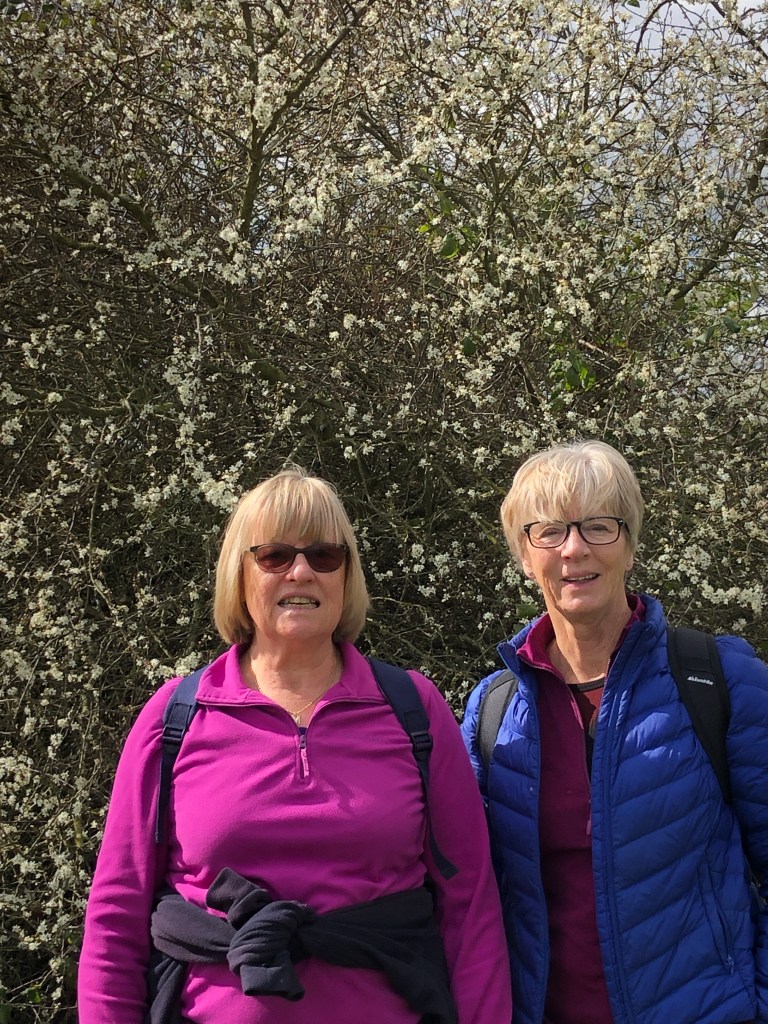 And I posed two of the group in front of a flowering blackthorn bush