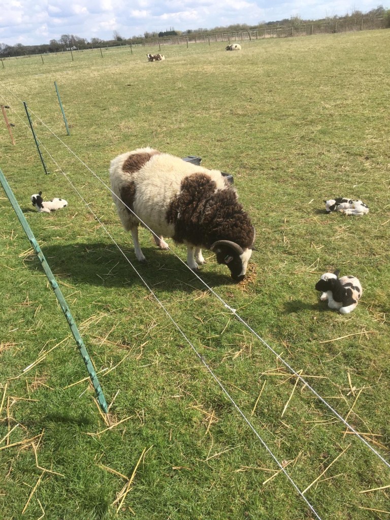 We lent Tufty’s services to three ewes in a nearby village and today one of them gave birth (unassisted) to triplets. It seems that the young mother is managing to feed all three. Amazing!