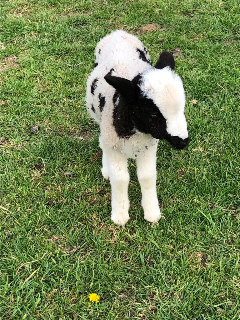 This morning she looked so fragile I really didn’t think she would last the day. By early afternoon she was sitting near the gate, panting and I carried her into the barn. I don’t think she even weighed as much as Nigel. The three other lambs, Surprise (the August baby), Poddy and Dotty’s twin, Spotty, all followed me to the barn. I sat on the straw with Dotty to my left and I stroked her, occasionally offering her a dish of water which she lapped at from time to time. Poddy, bless her, nuzzled next to me on my right and then sat down and put her face in my lap. I stroked them both and Spotty came over to Dotty and put his muzzle next to hers. Then he and Surprise sat down together just outside the barn. I sat stroking the two girls and looking out at the blue sky and the blossom on the apple tree occasionally kissing the top of Poddy’s head and then Dotty’s soft, white crown. She had such tiny little horn buds whereas Poddy has strong, pointed horns and a thick woolly coat. After an hour I got up, placing Dotty’s head on a pillow of straw. I went to tell Jeremy that she was dying. We sat together for a while and then he went to see her. I stayed in the front garden. He came back and said she was floppy and on her way. We walked back together and she was lying peacefully on the straw – no longer breathing. Bye bye dear Dotty. A short life but much loved.