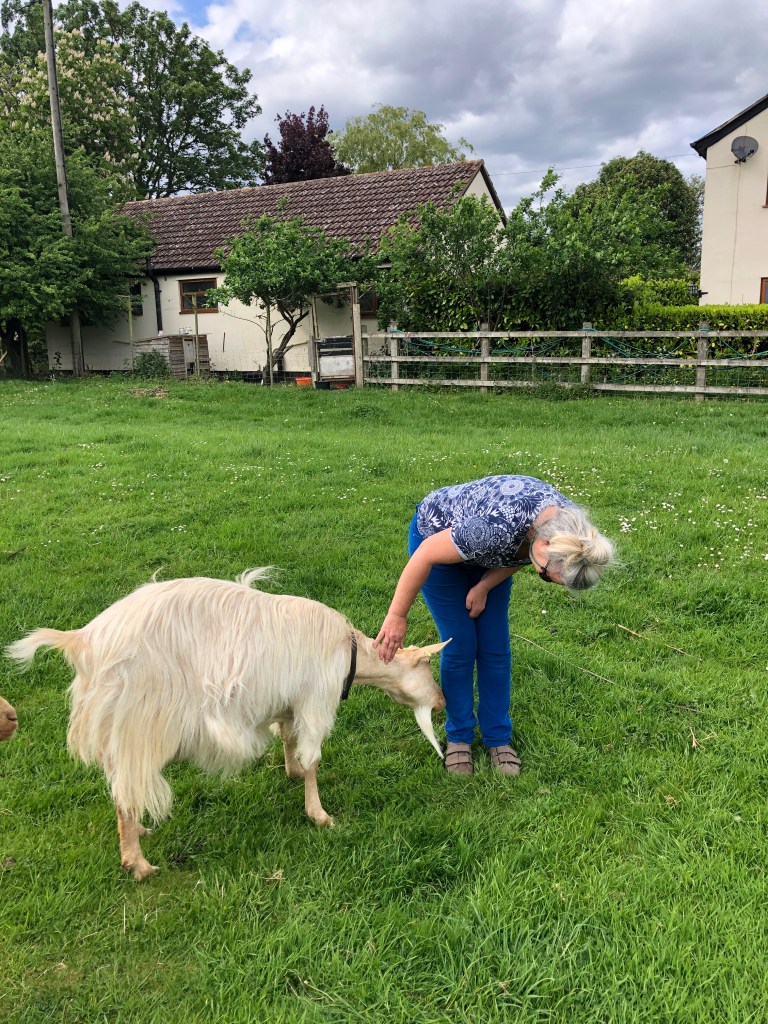May 12, 2022 by gfreedman2013 The electric mower and the electric strimmer had both run out of power and I was Stopping for a cuppa when a friend dropped in to say hello. Good timing She met Poddy And the goats And she went home with some newly laid eggs Share this: Click to share on X (Opens in new window) X Click to share on Facebook (Opens in new window) Facebook Like Loading... Related