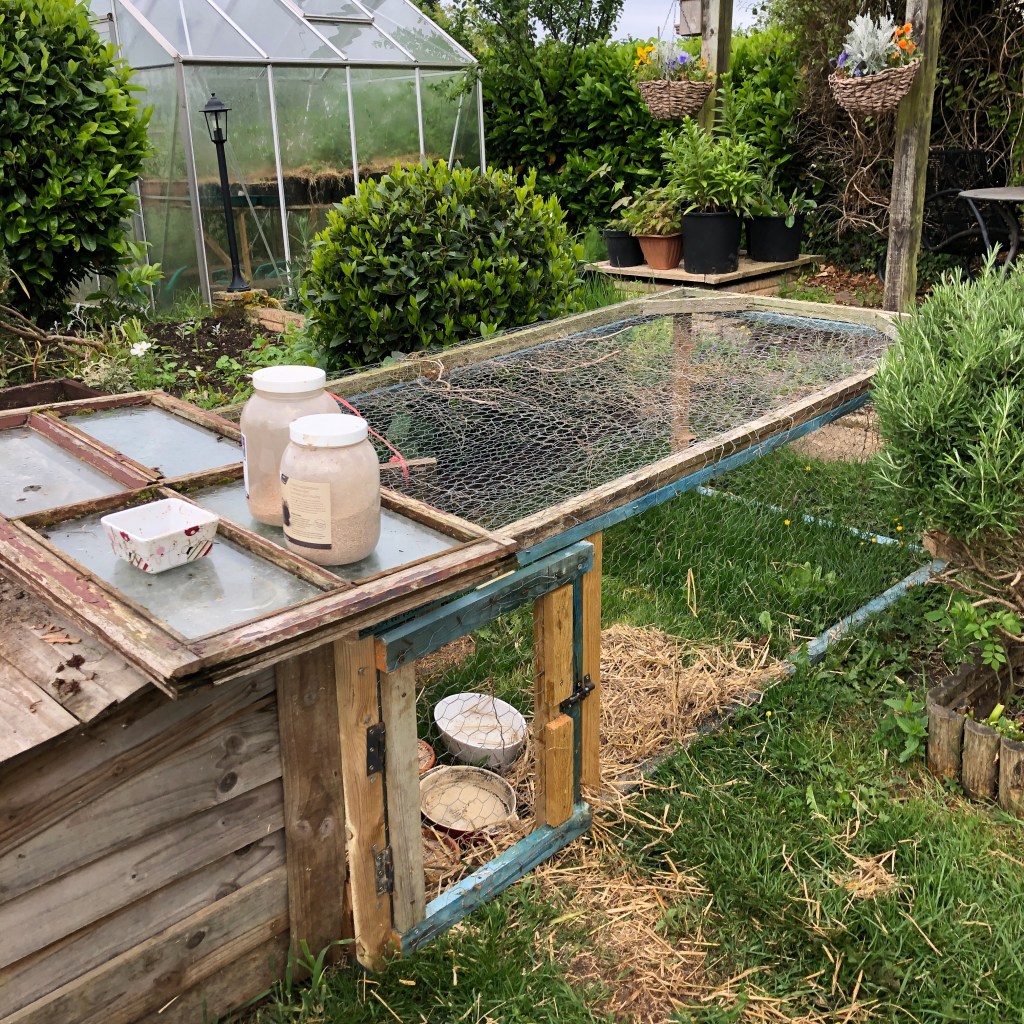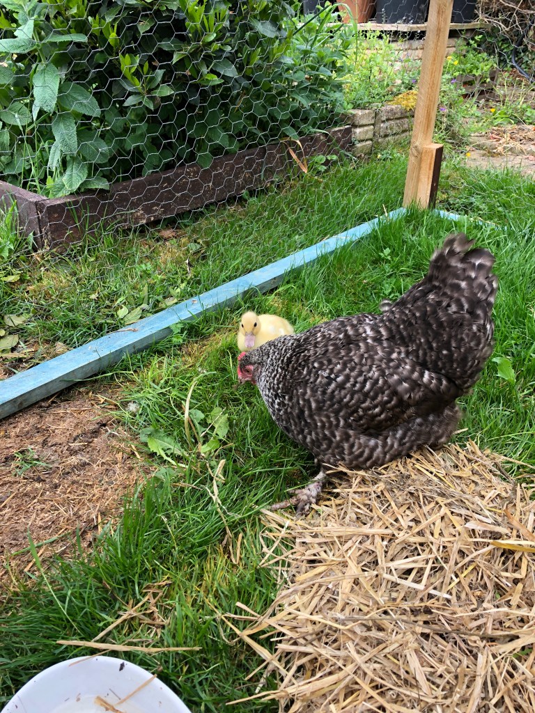 At home we have moved mother hen and her “duckling” to a larger run and house near the pergola