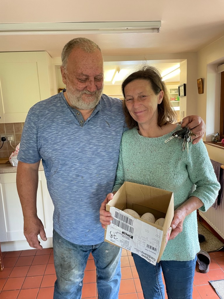 We had never met J and T before but they had noticed our geese on several occasions as they drove past The Gables and had meant to stop before now.We are glad to have met them and to pass on the eggs – here’s hoping that they will hatch.