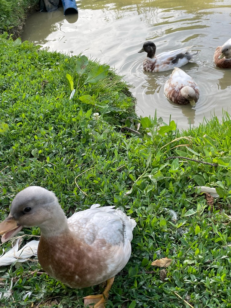 Today is the day designated for Mother Hen to rejoin her flock and baby duck to join the three other drakes at the small pond