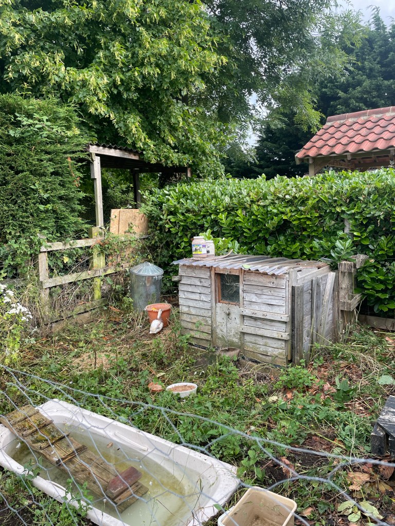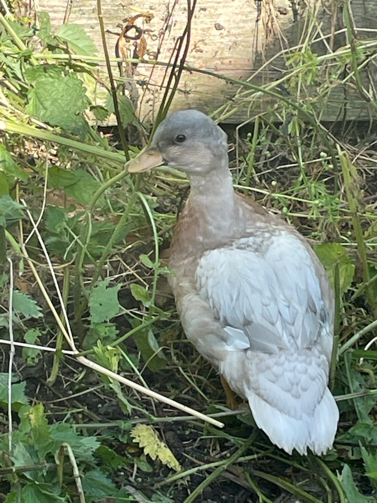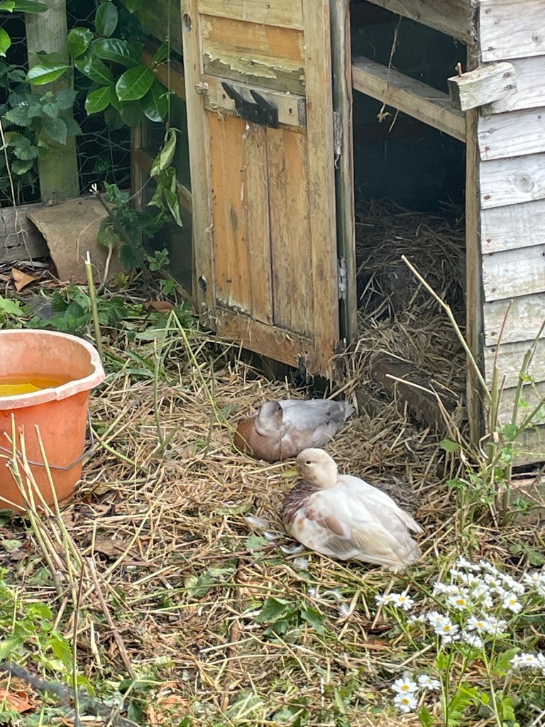 I’ve cleared out the old duck run near the house. Pulled out nettles, filled the bath there with fresh water and put straw in the duck house. Baby duck is there with one of the three ducks from the duck pond. I prepared the run last night and moved the ducks this morning