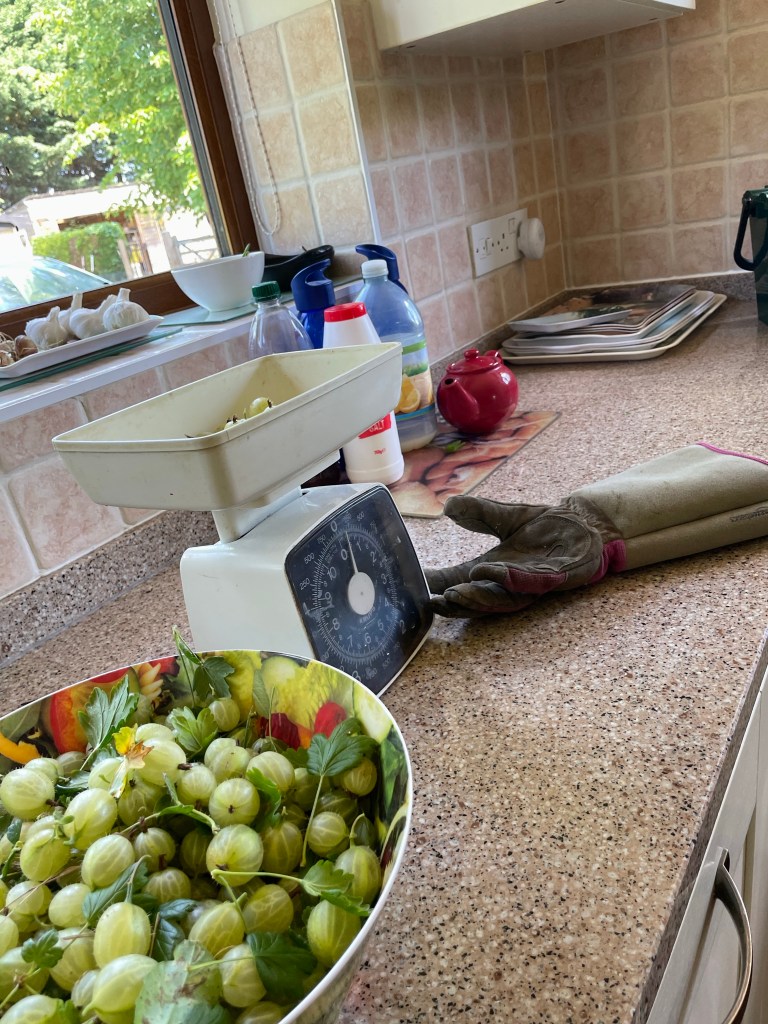 Back at The Gables it was time to don my leather gauntlets and pick gooseberries