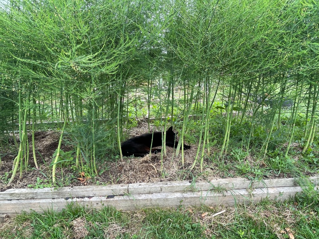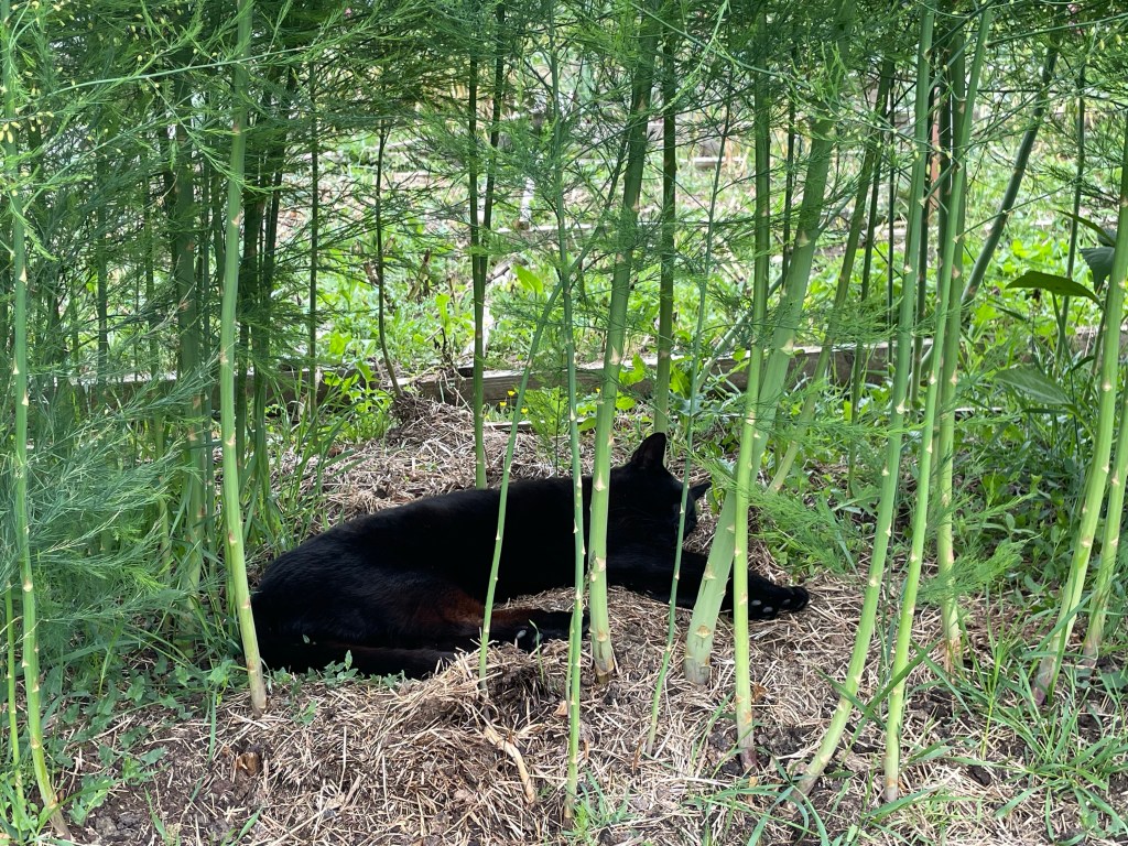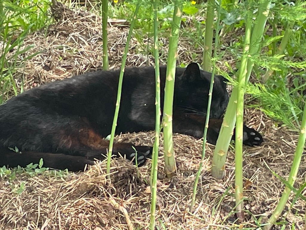 June 23, 2022 by gfreedman2013 How to stay cool on a sultry day – ask Nigel Snoozing under the asparagus ferns Is there room for me, Nigel!? Share this: Share on X (Opens in new window) X Share on Facebook (Opens in new window) Facebook Like Loading... Related