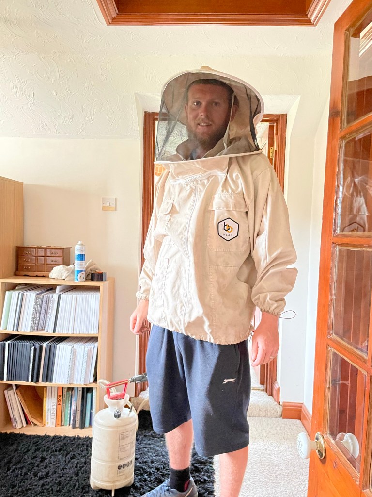 On the way out he and Jeremy talked about the different lifestyles of wasps and bees and Jamie (who had cleared 20 wasp nests yesterday) told J that he is often called to collect bee swarms hanging from peoples front doors. He puts them into boxes and then rehomes them with clients who are beekeepers. J is going on his list of potential bee recipients! Wasps keep away!