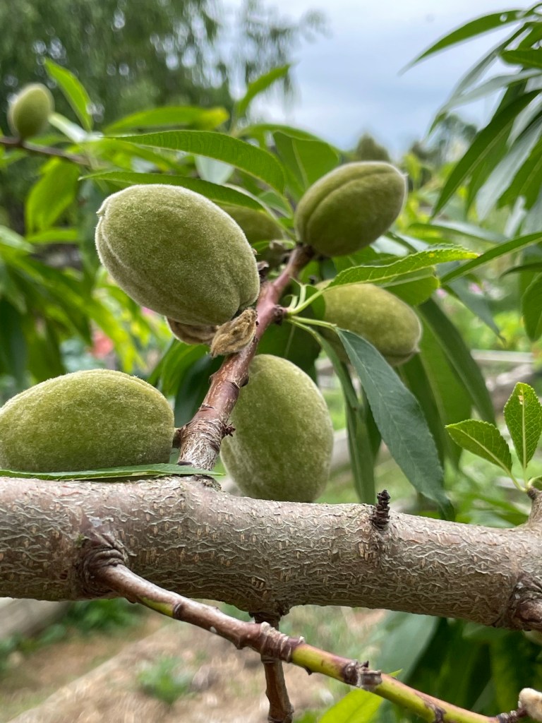 But is in fact a sweet almond tree laden with fruits.