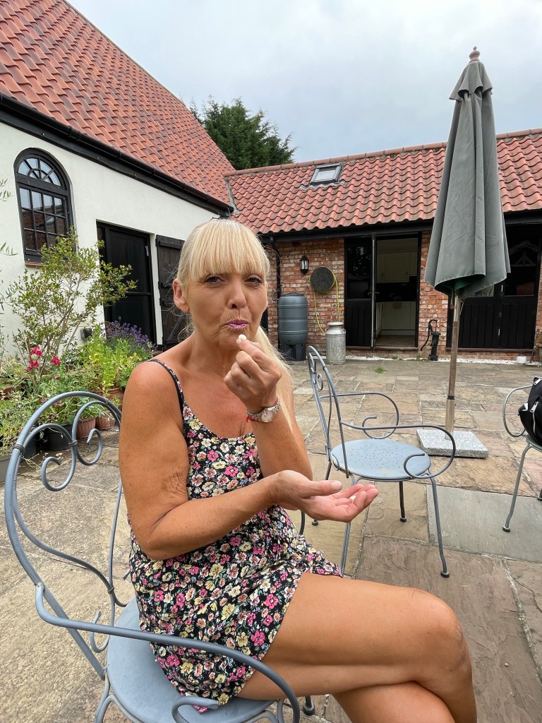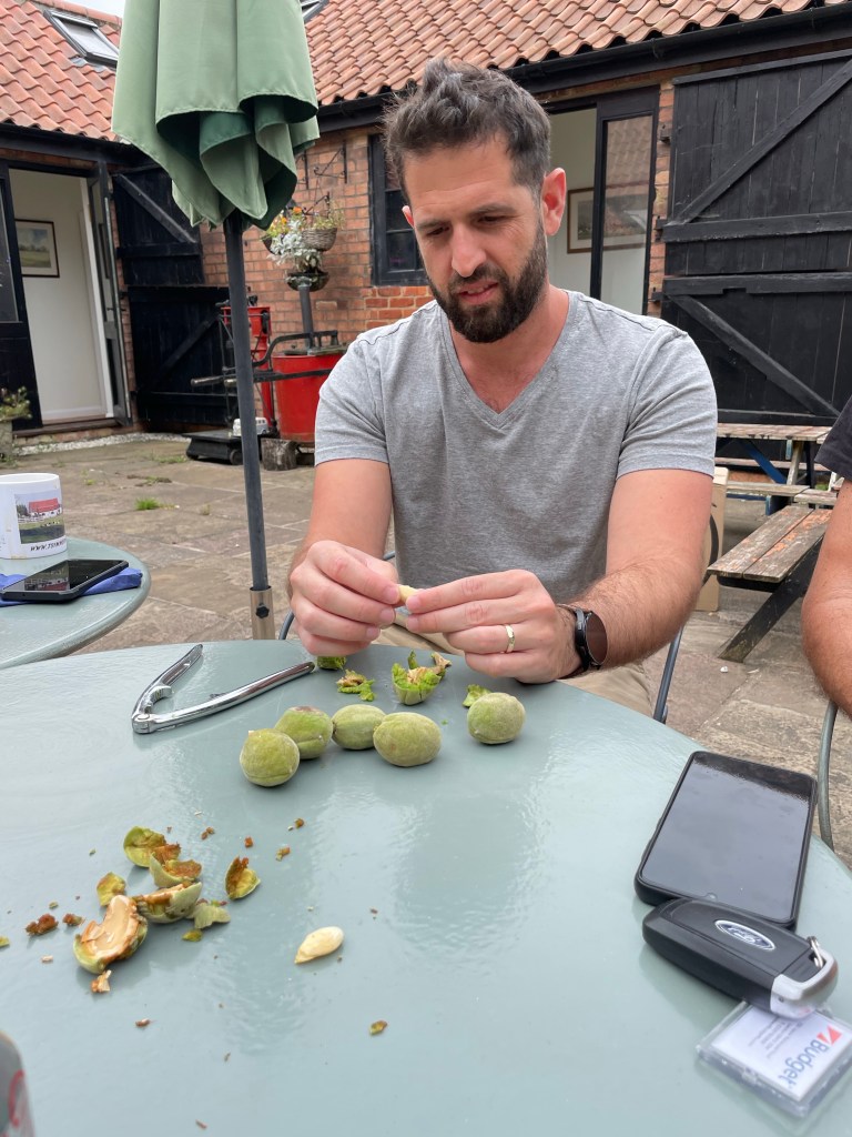 And Sue, from The Black Cat Farm shop at Roxton, confirmed what our cousins told us yesterday (they questioned me when I said that it was a nectarine tree). And (below) Sue and our cousin looked at the tree above