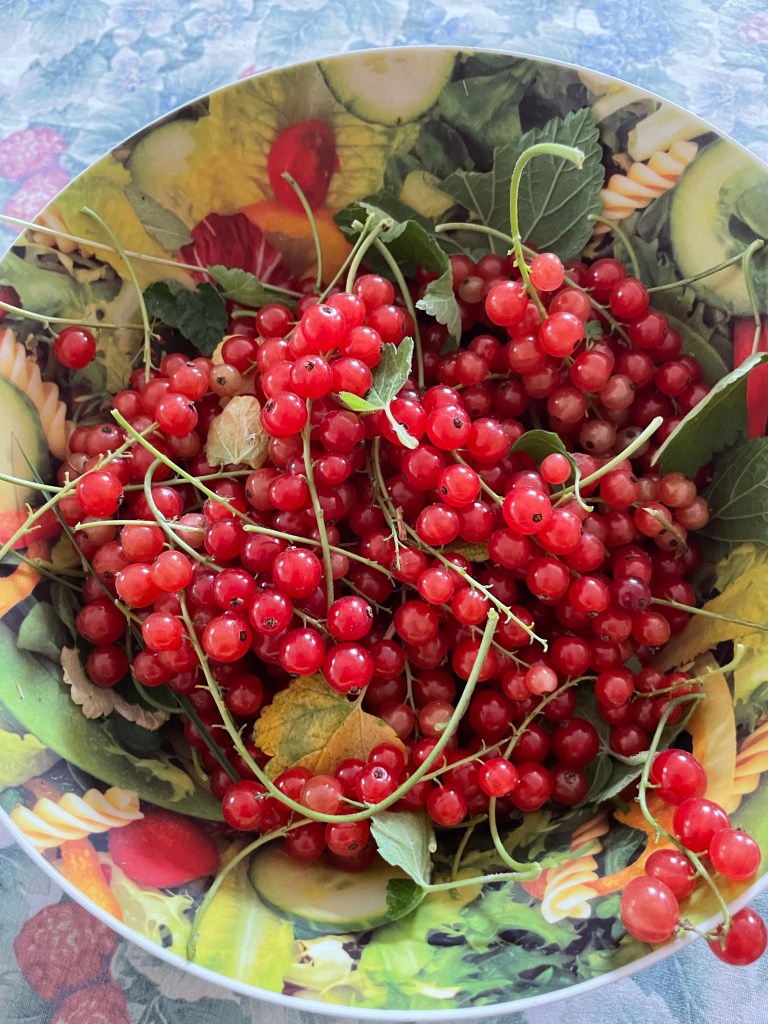 I’m just about to pit them Redcurrants picked this morning and cooked with sugar and now dripping through a jelly bag to make redcurrant cordial. I made another litre of blackcurrant cordial this afternoon. It’s now in the freezer