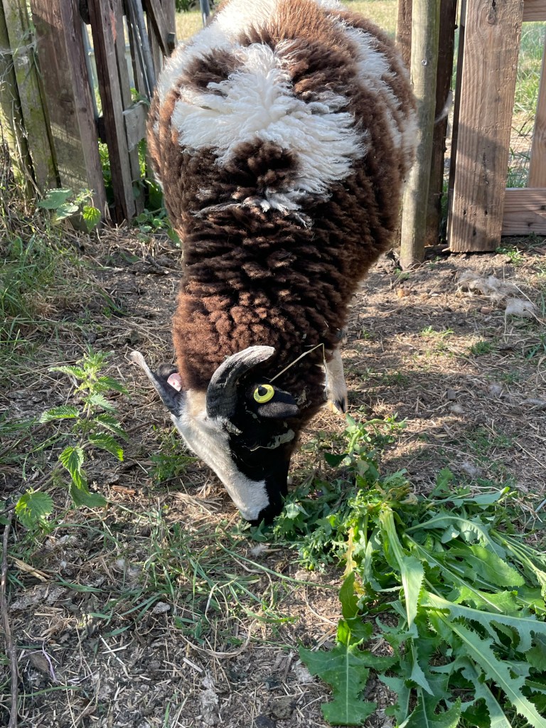 Poddy lamb enjoyed some of the weeds. Click below