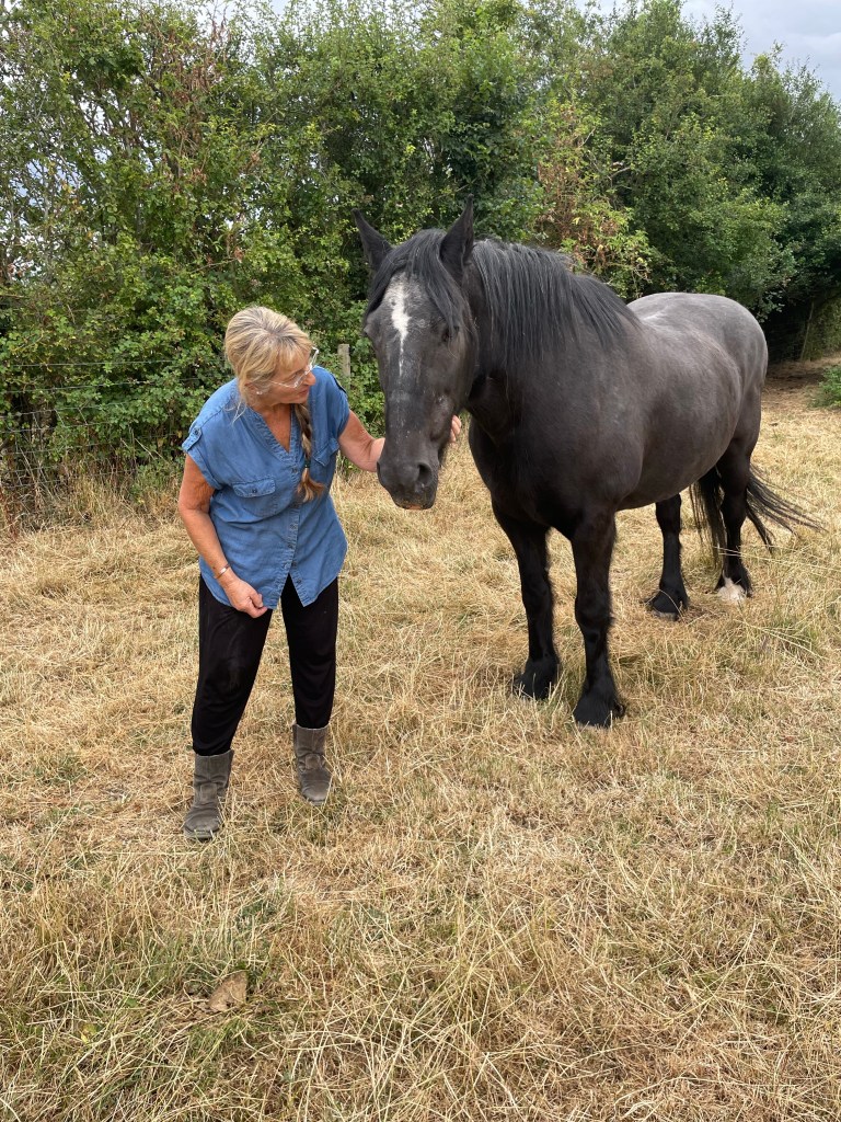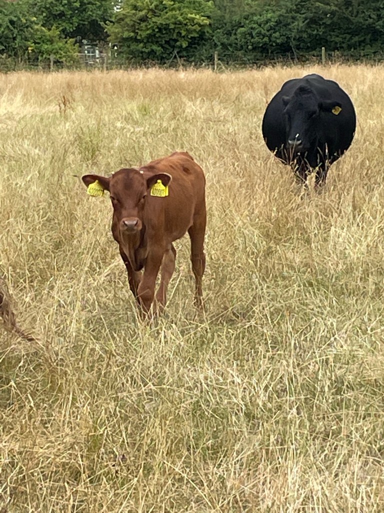 Grandson and his friend and I went, just now, to visit Kate and her cows and calves plus the cows and calves that she is looking after along with three sheep that are grazing in her orchard and her wonderful 32 year old Dales pony, Minnie