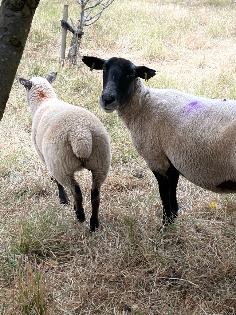 The visiting sheep in the orchard