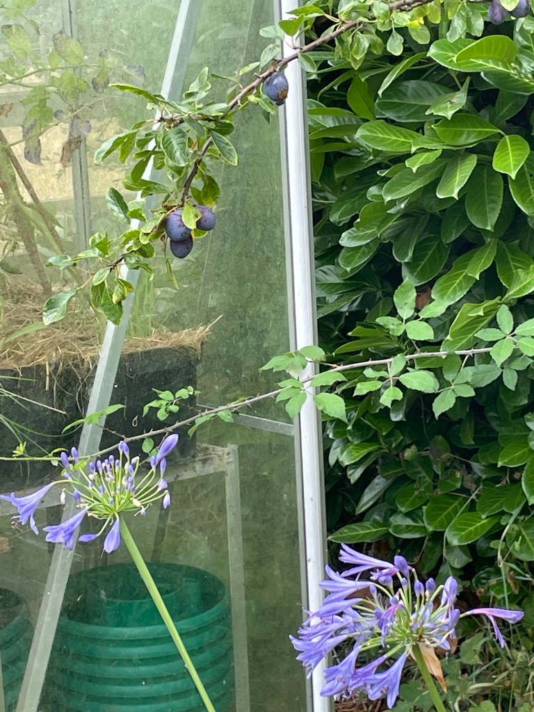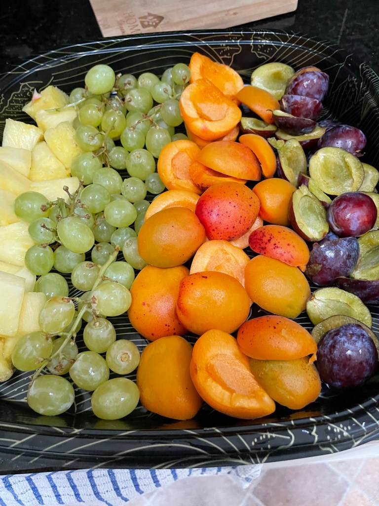 July 31, 2022 by gfreedman2013 I was sitting under the pergola, cat on lap, yesterday. I turned my head and saw These ripe, purple plums. I’ve picked some this morning and added them to the fruit platter for our guests tonight Next to the homegrown apricots. The grapes and pineapple are “shop bought” Share this: Share on X (Opens in new window) X Share on Facebook (Opens in new window) Facebook Like Loading... Related