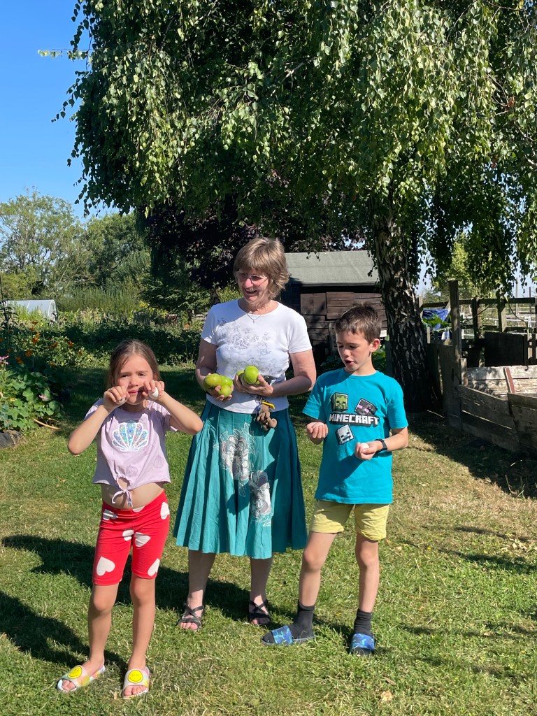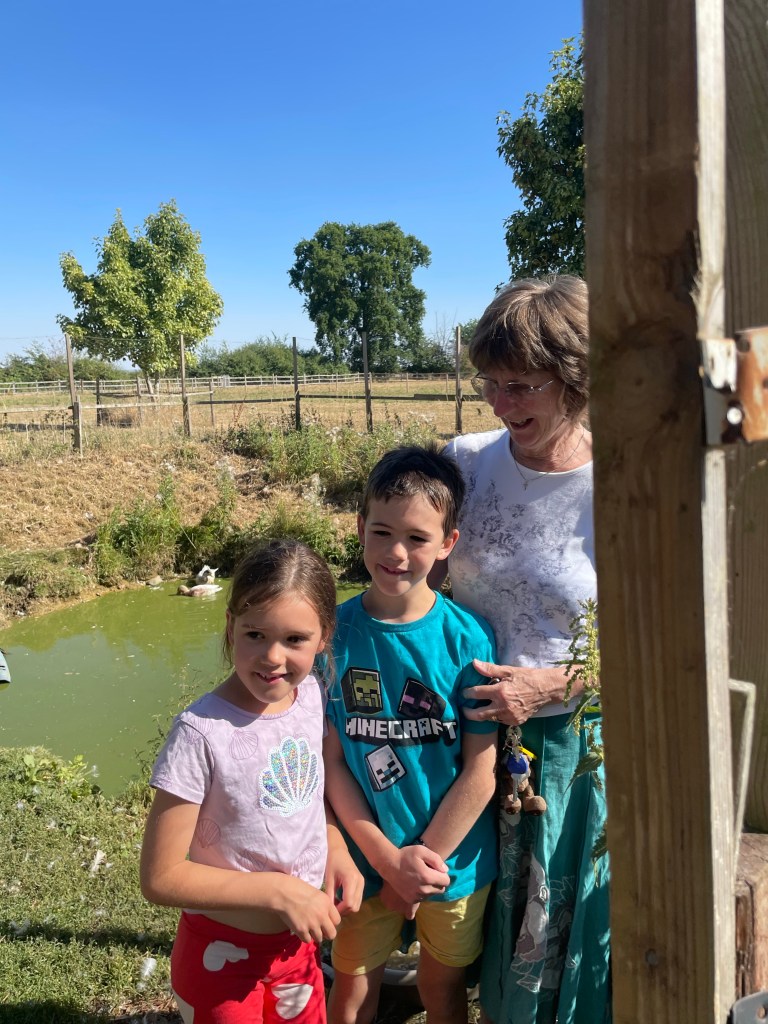 August 11, 2022 by gfreedman2013 A village friend called in with two of her grandchildren They wanted to see the gosling and her older goosey mentor We collected eggs and apples for them to take home for their tea Share this: Share on X (Opens in new window) X Share on Facebook (Opens in new window) Facebook Like Loading... Related
