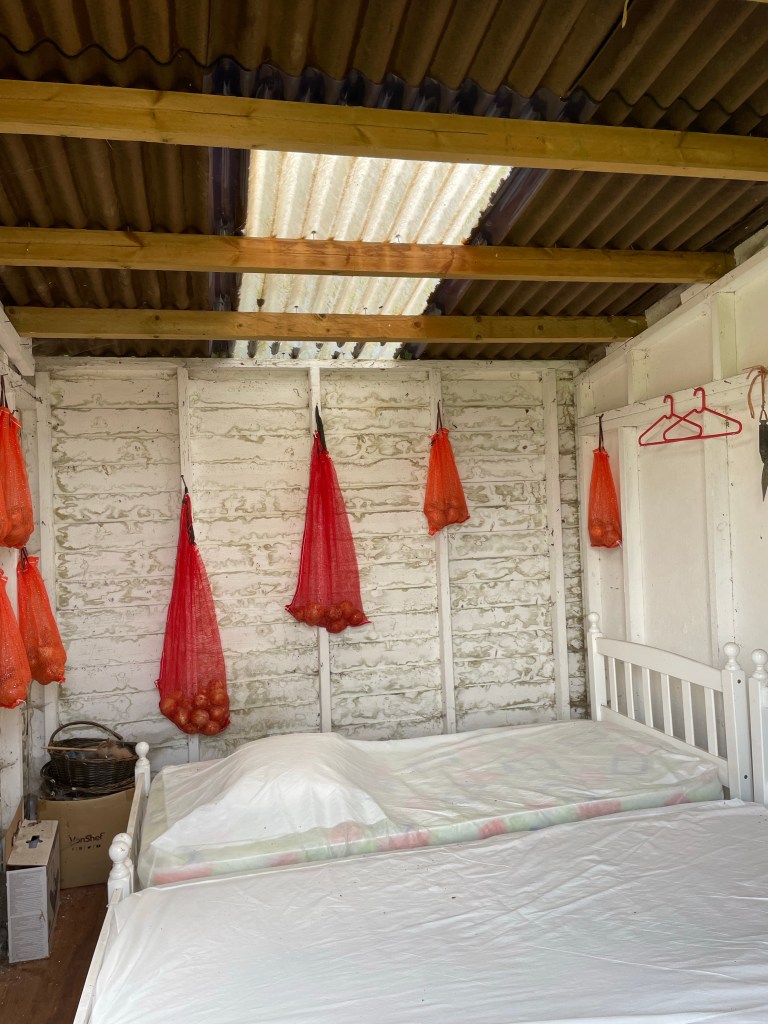 Imagine our surprise when Jeremy lifted up one of the pallets and we found a hedgehog sleeping underneath some feed bags