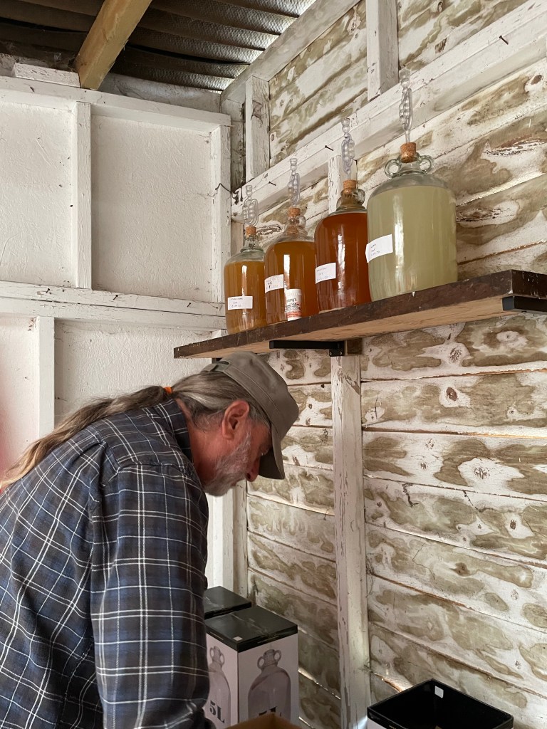 J asked me to help him sample the first demijohn of cider to test whether it had stopped fermenting. He siphoned off a small amount into a vial and theen used a simple device to make a reading. He told me it would be a shame to waste the cider (which tastes just like the scrumpy we used to drink in Devon forty years ago when we lived there).