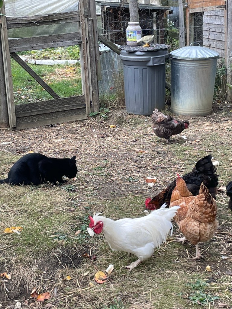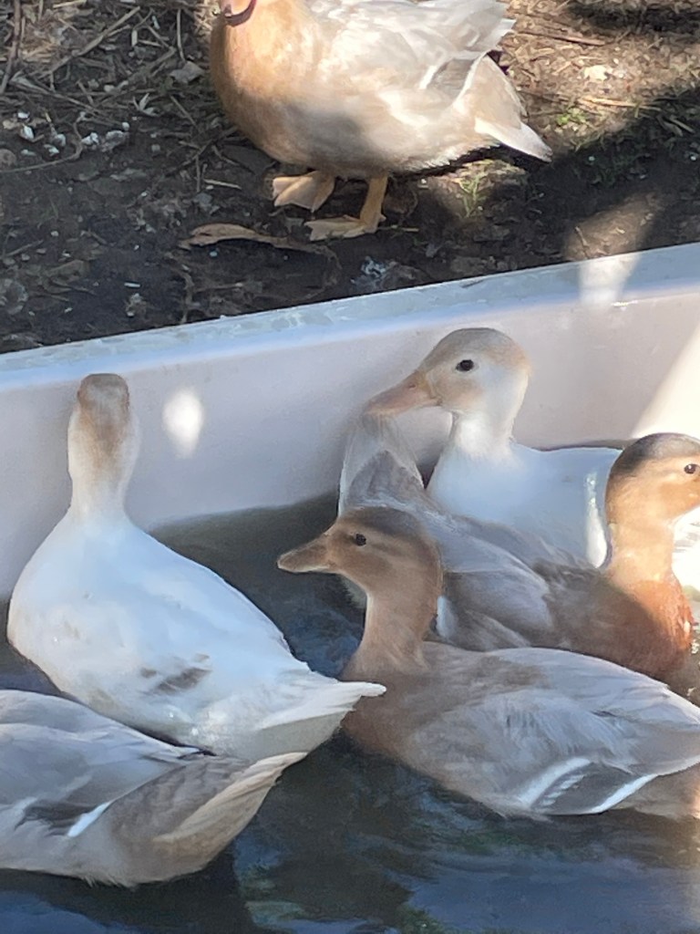 September 28, 2022 by gfreedman2013 Late September afternoon in the garden Below – the ducklings are nearly fully grown As I was feeding breadcrumbs to the chooks a “starving!” Nigel decided to disguise himself as a chicken ! Oh Nigel! Share this: Share on X (Opens in new window) X Share on Facebook (Opens in new window) Facebook Like Loading... Related