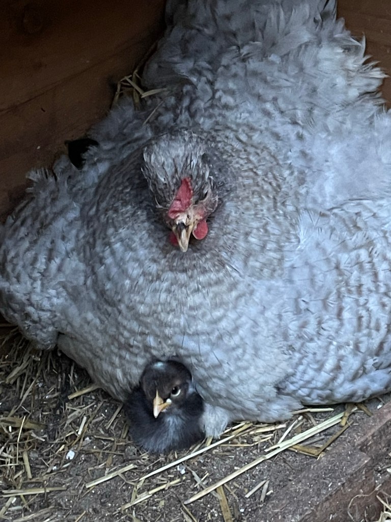 Then the sky was darkening and it was time to put all the creatures to bed. Mother hen and babies were already snuggled up for the night