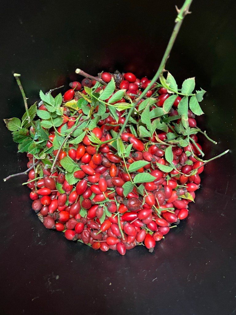 I picked enough rose hips to try and make some rose hip syrup. Full of vitamin C