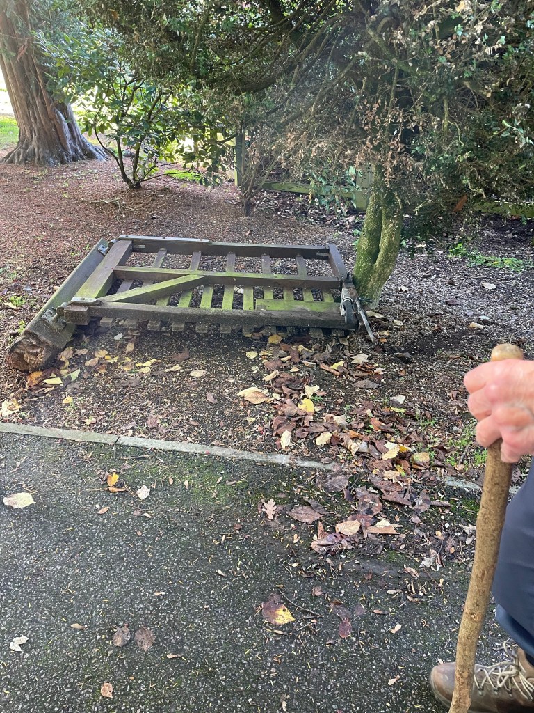 1. I noticed this on Sunday as I walked that way. The post looks really rotten so may well just have fallen in the wind!