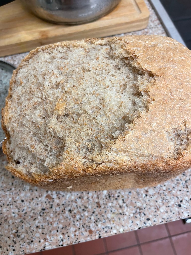 Can a cat look sheepish? A new loaf of bread is now being prepared in the bread maker. My fault surely, not Nigel’s fault.