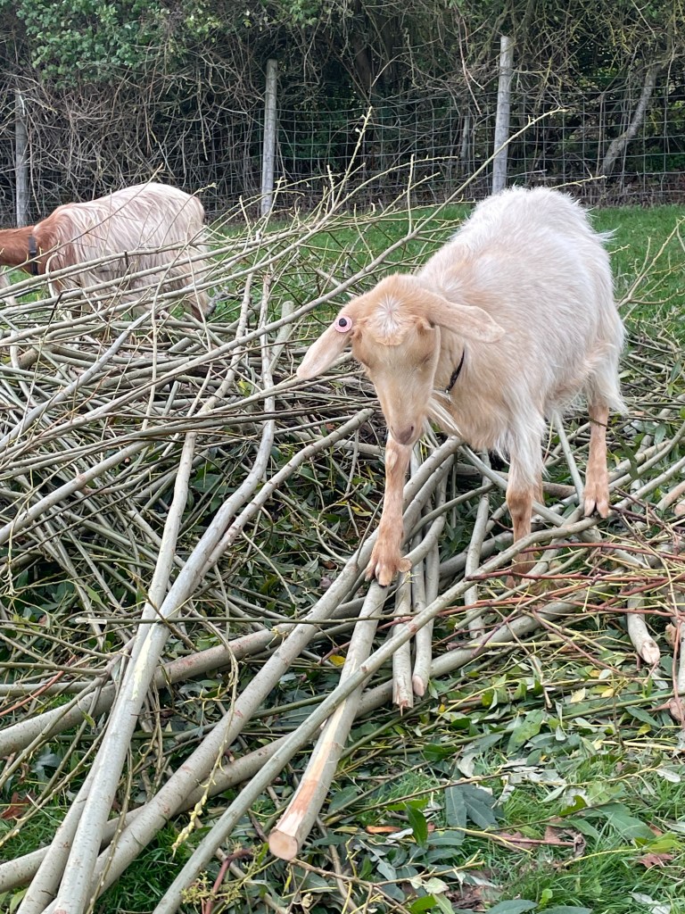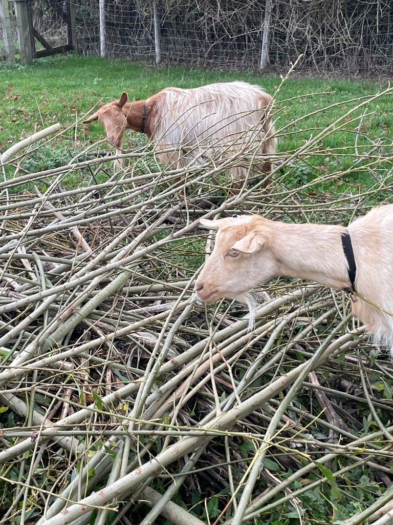One thought on “The goats have made short work of the willow that J took them on Sunday”