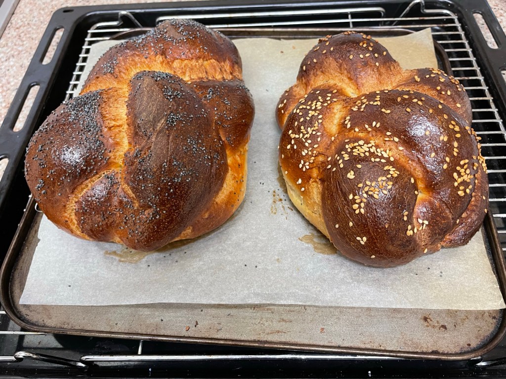 2 thoughts on “Chollahs made by Jeremy with his sour dough starter – these just came out of the oven. More are baking now and smell delicious