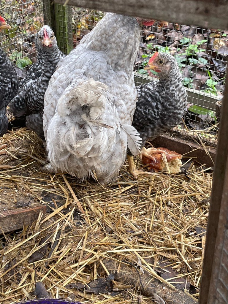 The remains of a banana bread that I made last week. Our guests had some but we aren’t keen on it so it has gone to the chicks and also to the quail barn. Click below