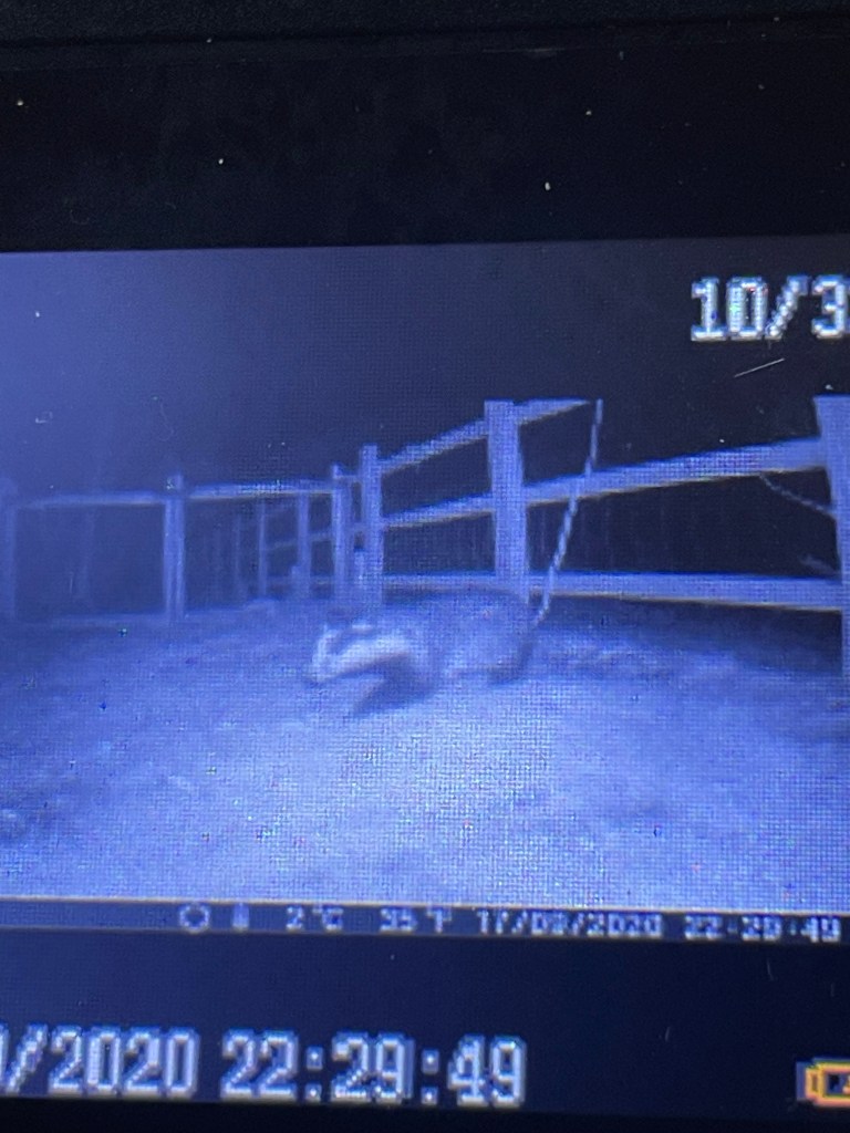 For several weeks, since the onset of cold and frosty days and nights, we have found lots of evidence of digging around the vegetable garden. We put out a night camera and occasionally saw odd shadowy shapes when we looked through the grainy photos but nothing conclusive