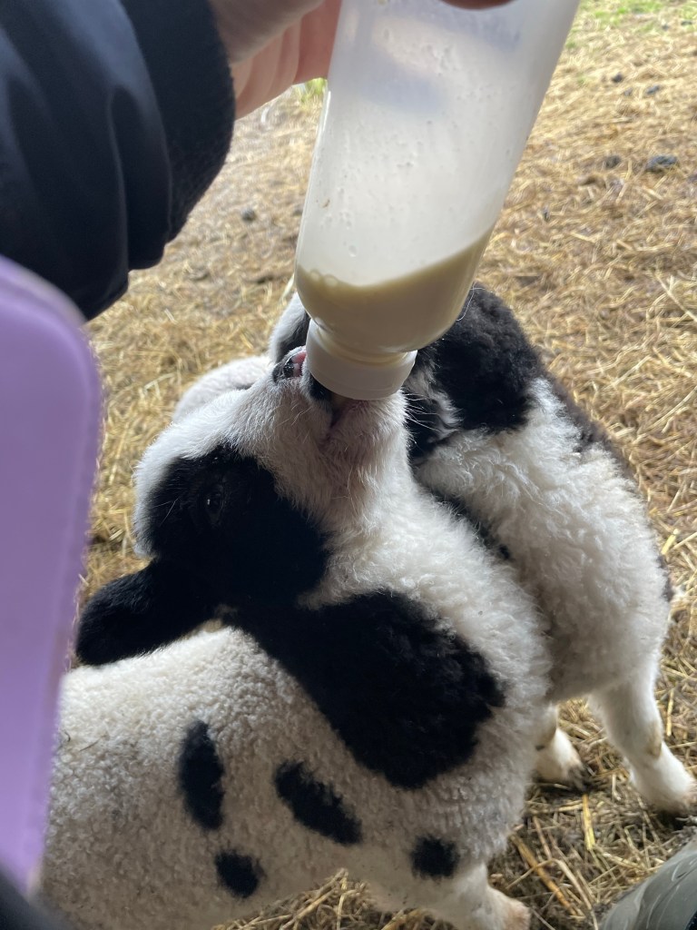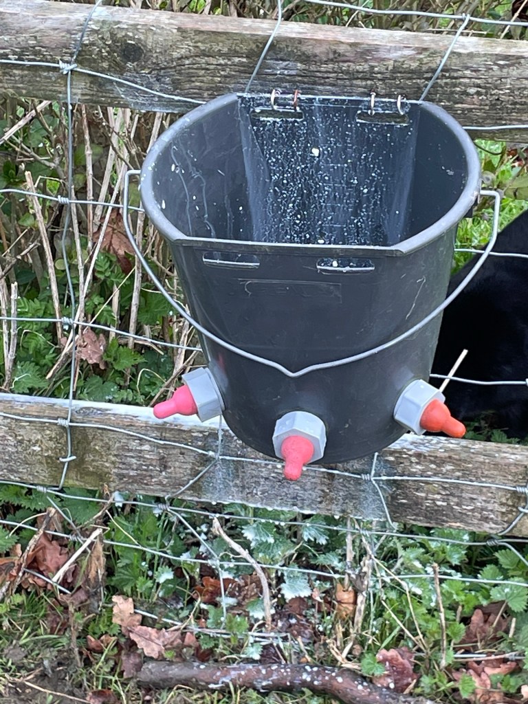 The bottle fed twins, PJ and Ponyo, need to move on from bottles to a “shepherdess” bucket