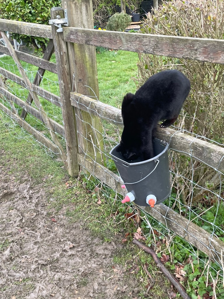 Ponyo is getting the hang of it but PJ (who was slow to learn to suck from the bottle) is a trial!I gave in and fed him a bottle. We will keep trying Someone has taken to the bucket!Click below