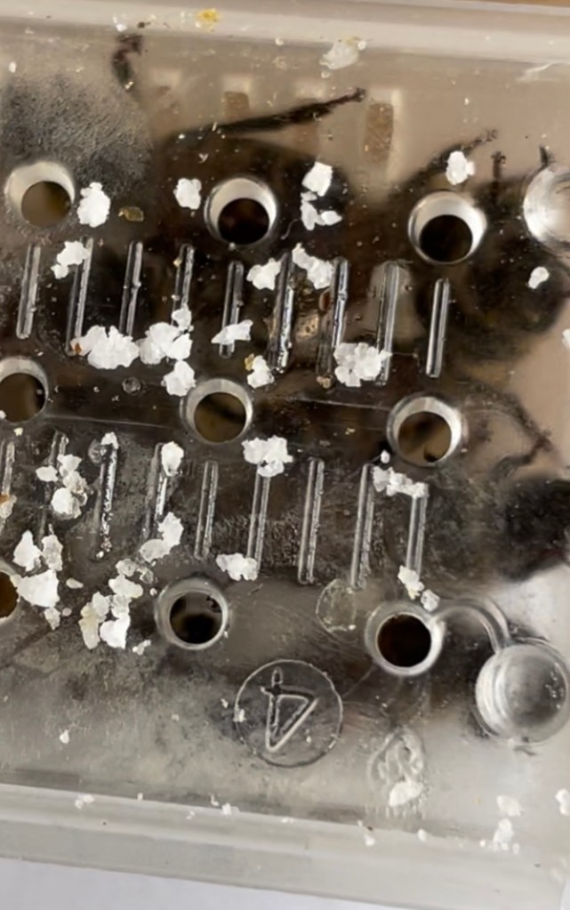Jeremy will introduce her into the second hive this afternoon. He hopes that the resident bees will accept her Click below