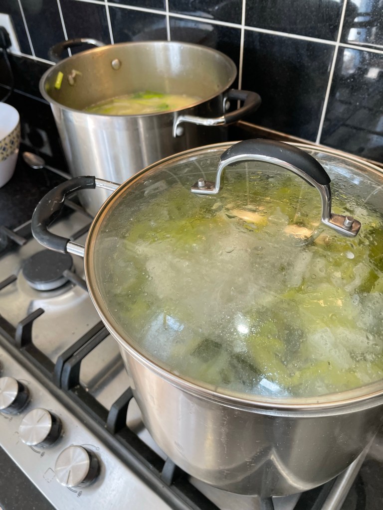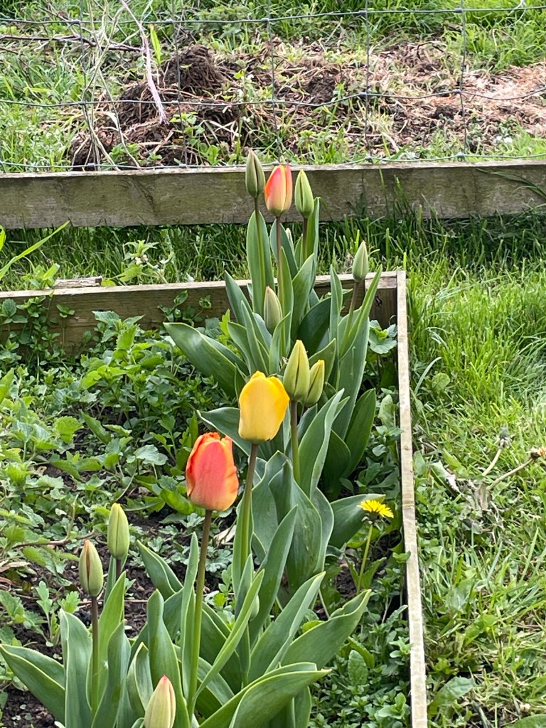 Weeding Opening gates all around the fields for the tractor driver Cut and washed the leeks, peeled potatoes and added them to the pots to make leek and potato soupThen stopped to admire the flowers, blossom and pots