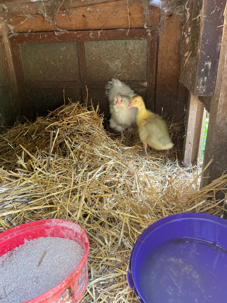 April 27, 2023 by gfreedman2013 We moved the gosling snd Mother Hen to larger premises just now They’re a bit spooked and haven’t ventured outside yet I just came outside snd they’ve made it to fresh air ! Share this: Share on X (Opens in new window) X Share on Facebook (Opens in new window) Facebook Like Loading... Related