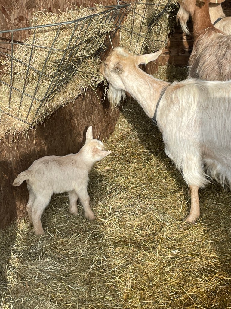 One thought on “Young Billy and mother Willow are looking fine. No more births yet in the goat shed