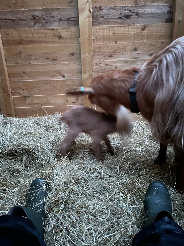 Wisp’s little kid was weak last night and we gave her some powdered colostrum