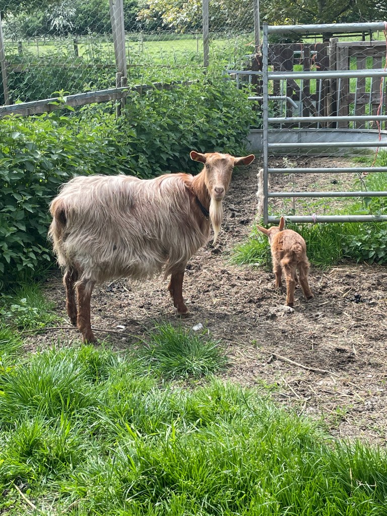 It was a difficult delivery a week after Diana and Camilla were born to Ruth. Wisp has a damaged udder and can barely produce any milk. Jeremy is milking Willow once a day and we are bottle feeding Wanda. Not the best start