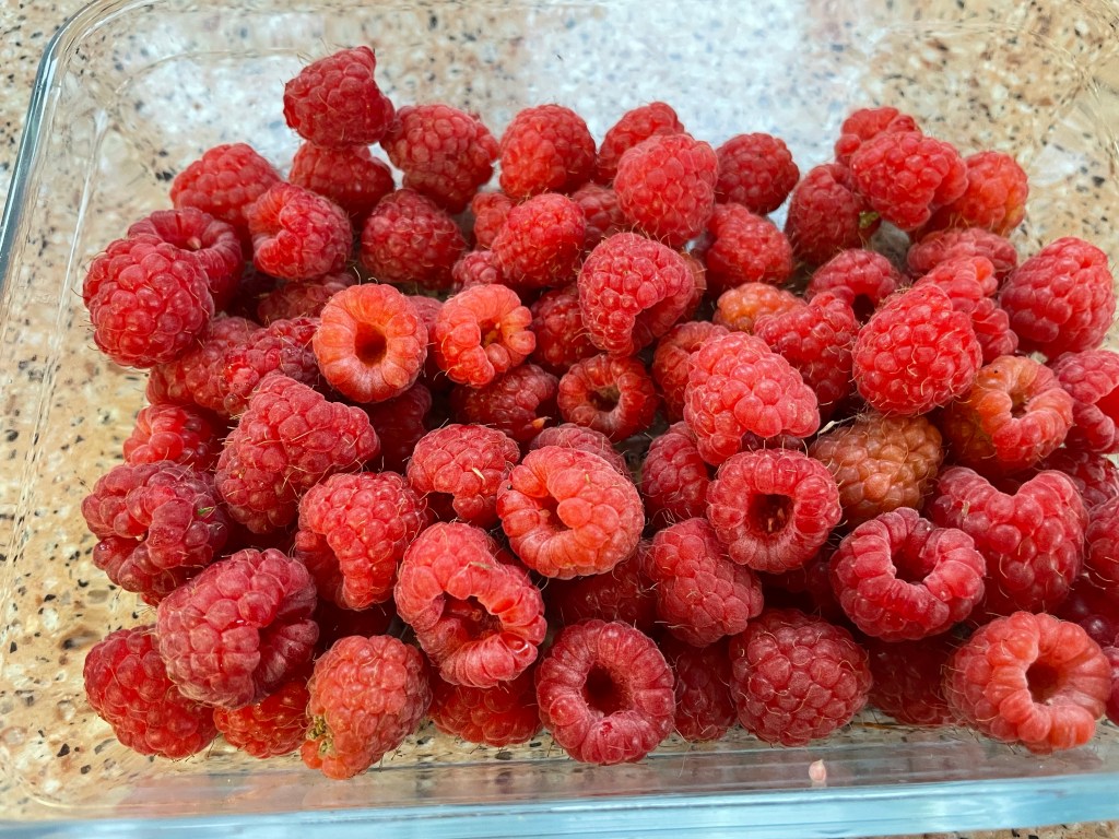 One thought on “Plump raspberries – picked this evening”