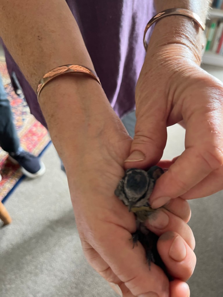 A friend helped me to catch the baby blue tit and I took it in my hand. So soft and trusting