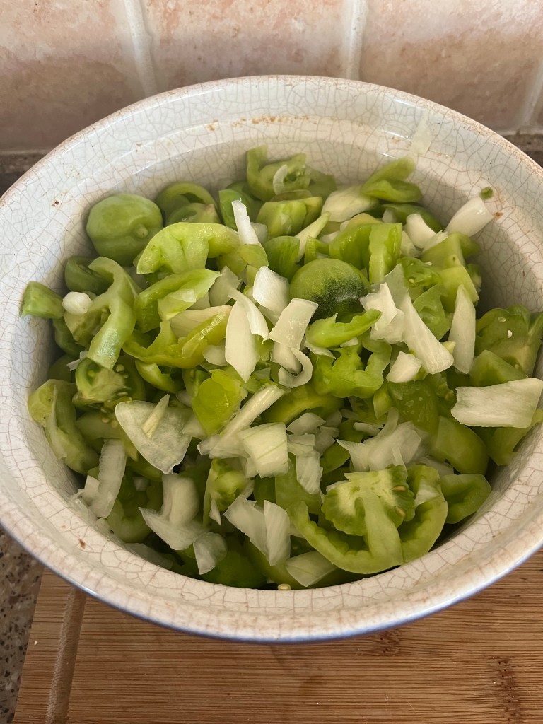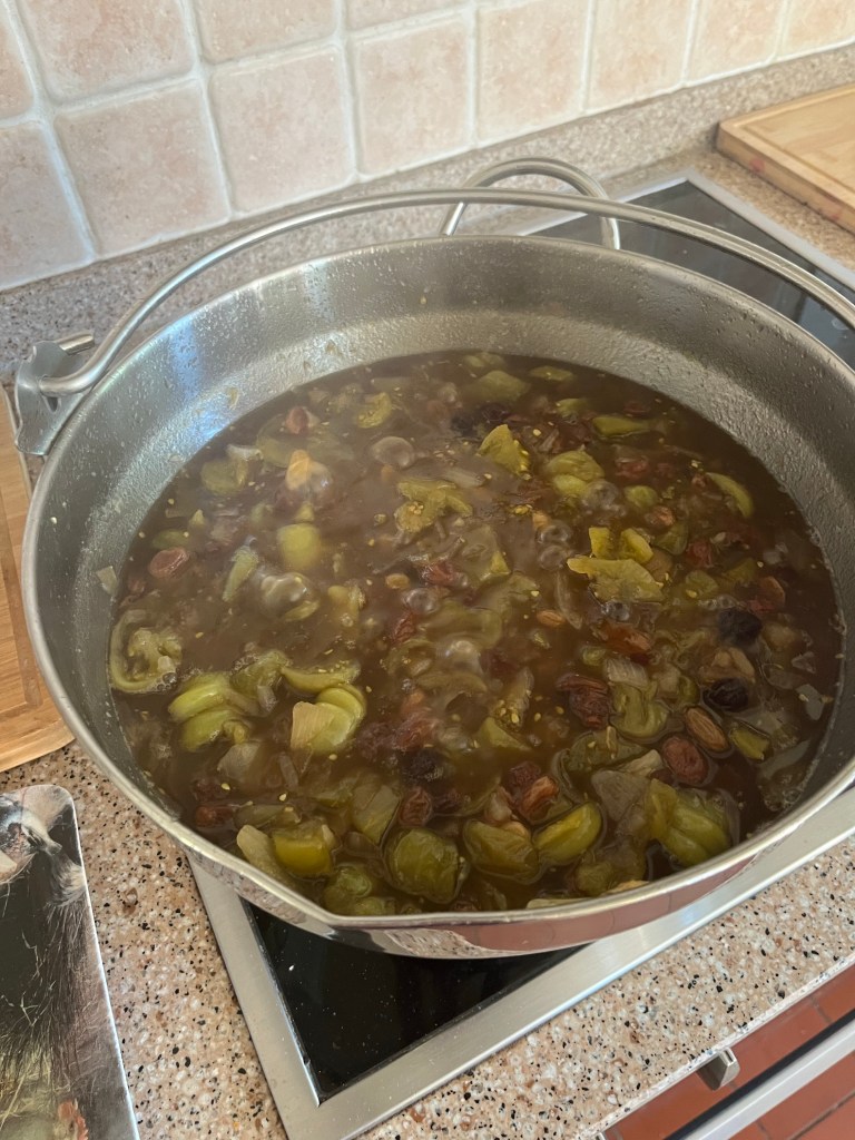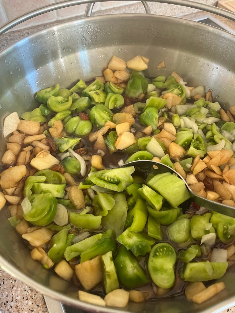 September 22, 2023 by gfreedman2013 What to do with green tomatoes? Pick ‘em and salt them overnight with chopped onions Start to cook with vinegar, sugar and sultanas Nearly ready to pot up Fifteen jars Share this: Share on X (Opens in new window) X Share on Facebook (Opens in new window) Facebook Like Loading... Related
