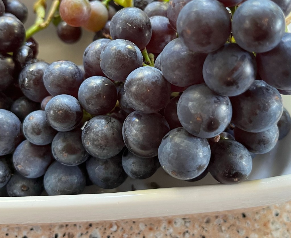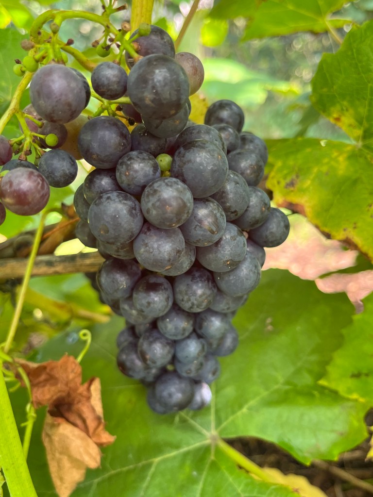 Where bunches of black grapes are ready to harvest ……. and eat