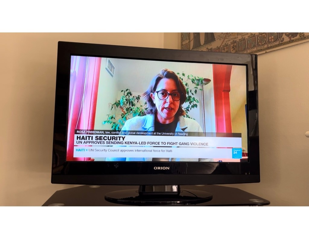 Of armed Kenyan police in Haiti. Professor Rosa Freedman (yes our daughter) questions the wisdom of this new move to control violence on the island in a France 24 TV News interview which aired just now.