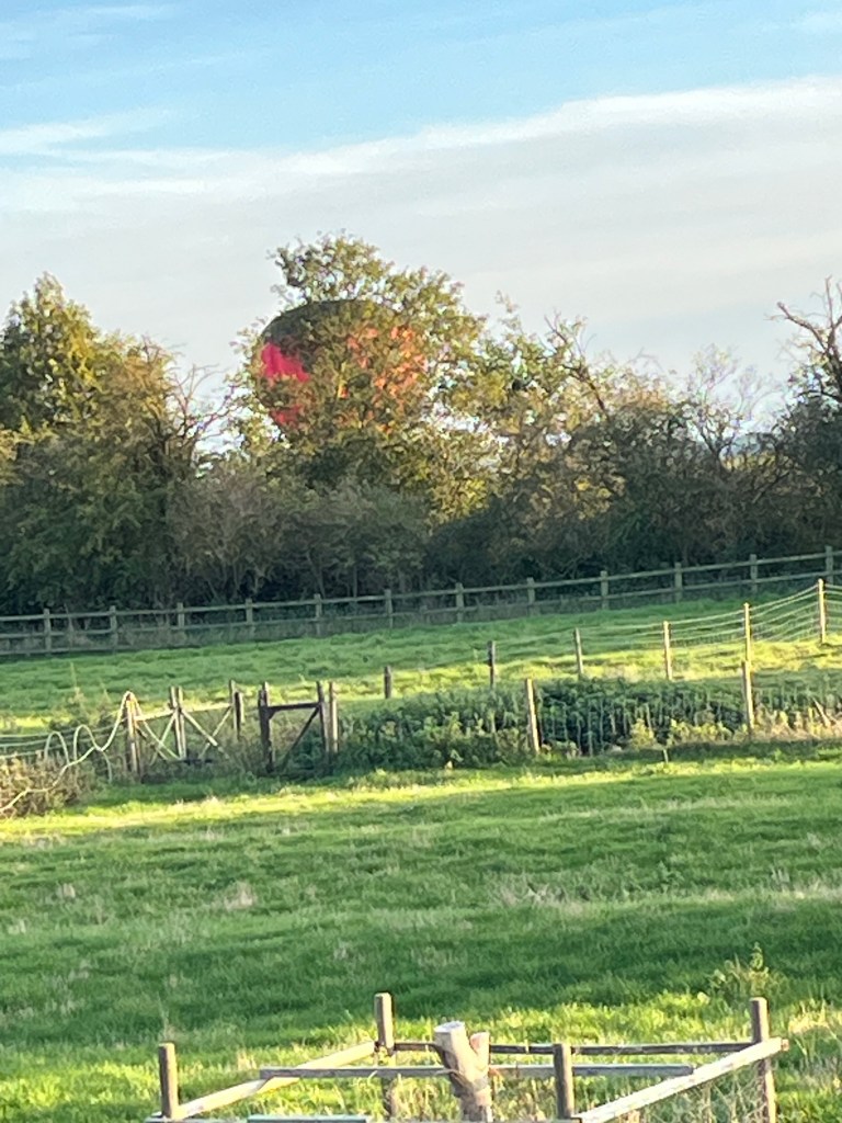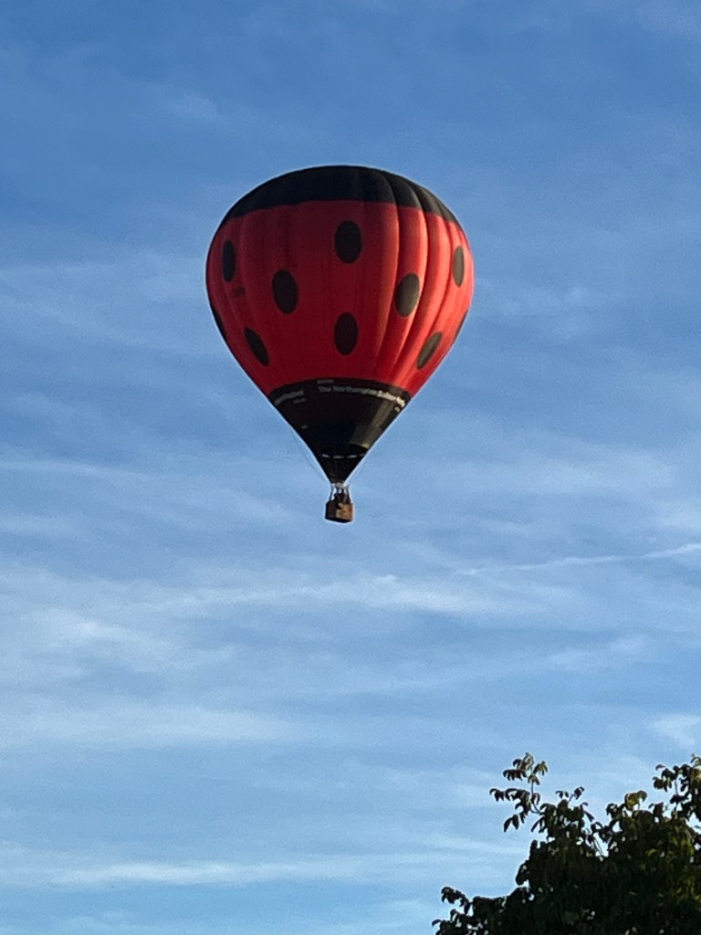 Apparently three balloons launched from their normal place in Risely. First one only made it to the far side of Thurleigh. Phil, in Colesden, phoned to say he had spotted two balloons coming my way so I went out to look. One just made it over the road to their normal landing spot on the GolfCourse.