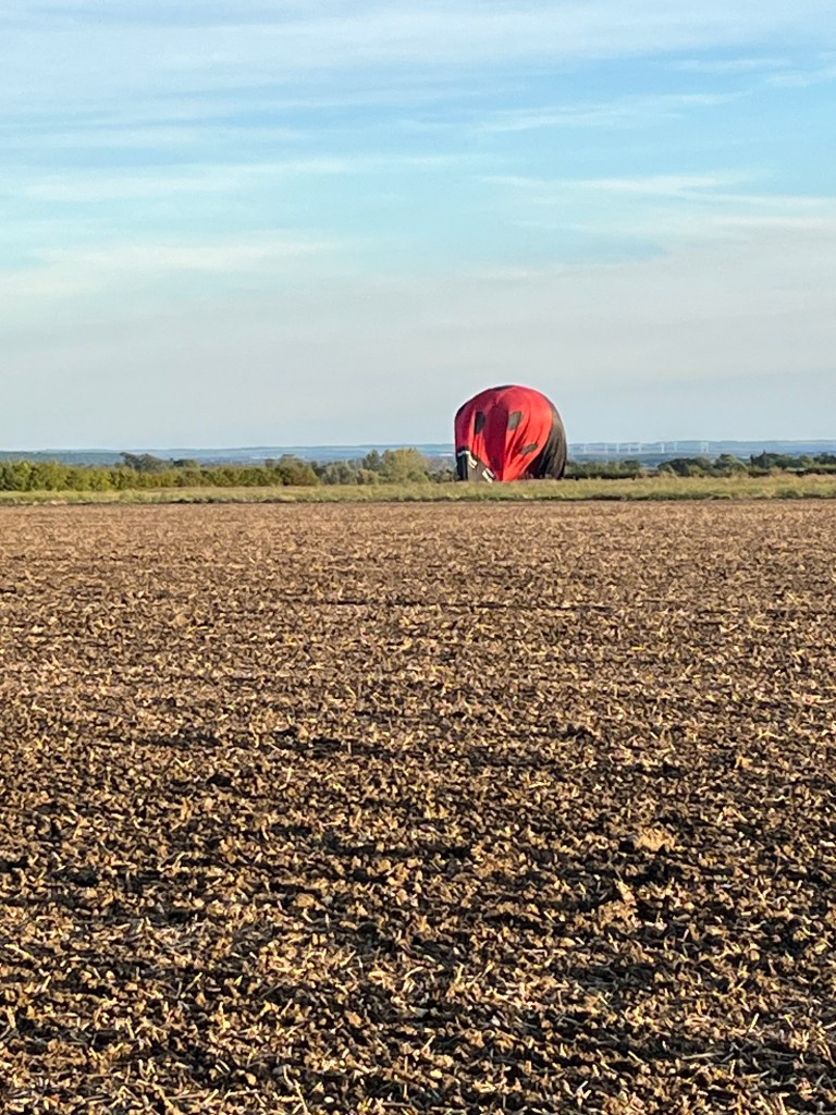 Third one landed very neatly on the grass strip between the two parts of the bean field in front of me, with easy vehicular access down the footpath track. One of the retrieving chaps asked who the field belonged to so they could get permission to drive down and get it. Betty was not at home so I gave him John Lammyâs number (John is Bettyâs son in law who does the farming on her land now) and permission was of course granted. Very quick retrieval of basket, balloon and two pilots and all drove off before it got dark.
