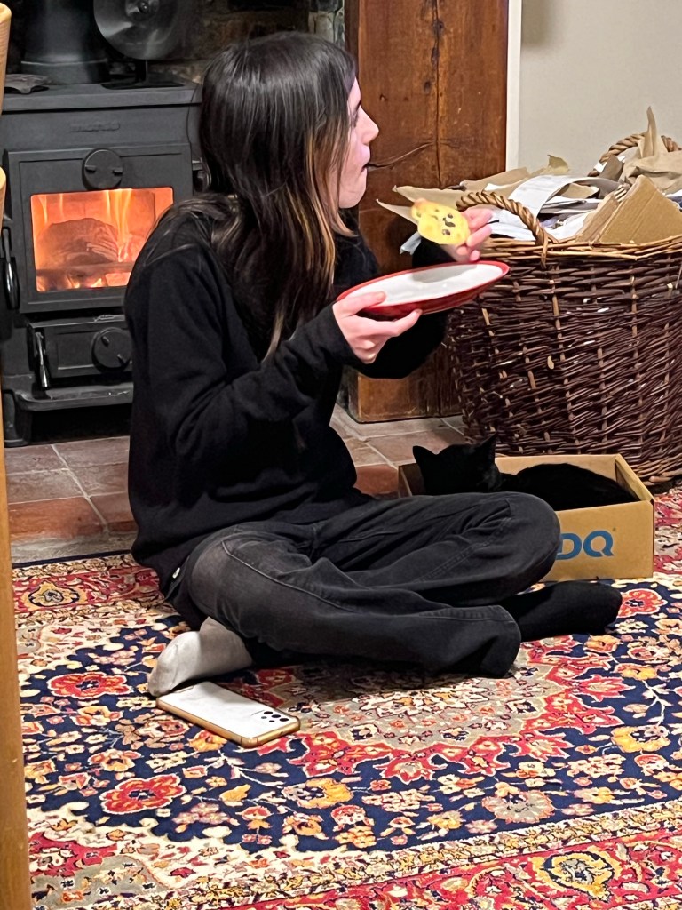 November 26, 2023 by gfreedman2013 Chocolate chip cookies, a wood fire and a cat in a box Share this: Share on X (Opens in new window) X Share on Facebook (Opens in new window) Facebook Like Loading... Related