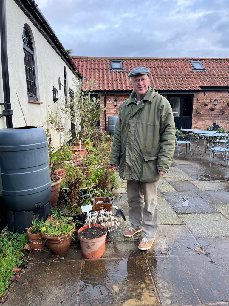 The roses used to grow at The Gables many, many years ago when his grandmother and her family lived in the house. I believe that his grandmother was married from the house and then left to live on a nearby farm. It is quite poignant and fitting that a cutting of the original rose bush has “come home” and we will treasure and tend the bush and hope to see it flower. What a wonderful gift.