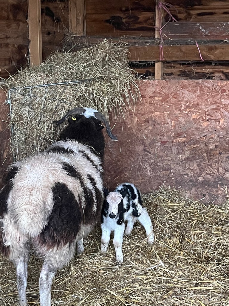 Perhaps because she was bottle fed herself and still thinks she is a lamb and not an adult ewe. I brought Poddy into the barn with her baby so that we can keep an eye on them and try to encourage Poddy to become a mother.