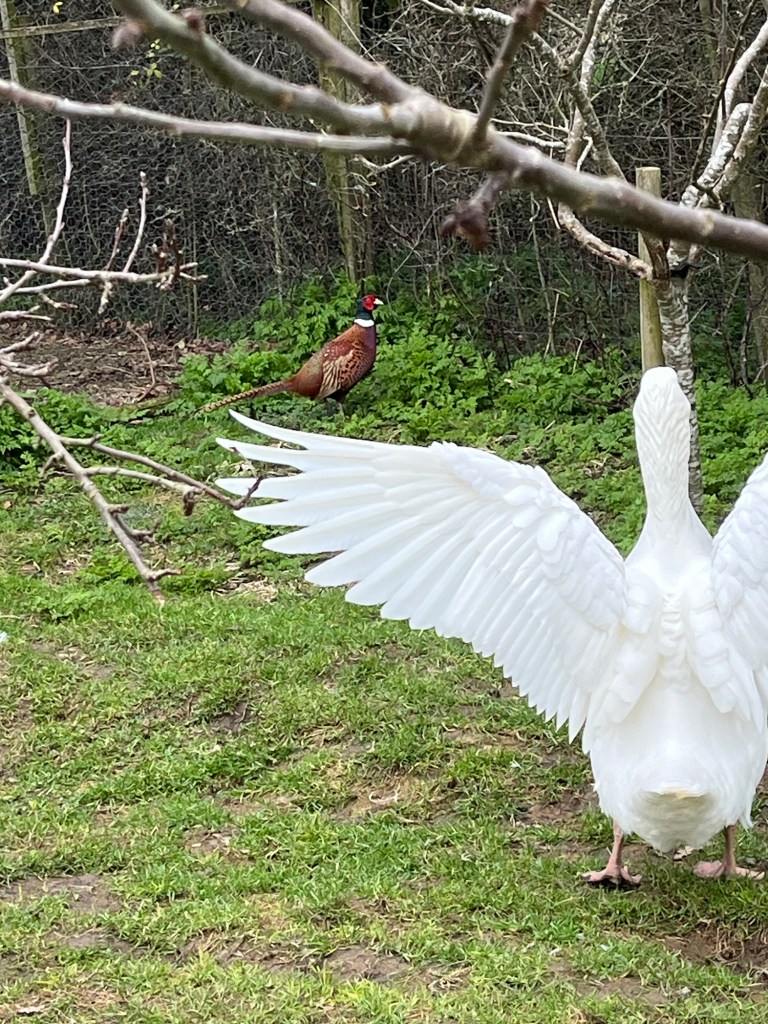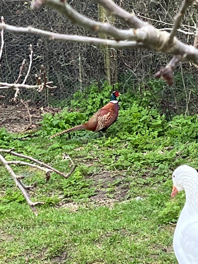 February 15, 2024 by gfreedman2013 A pheasant amongst the geese in the orchard late afternoon The scene gave me an excuse to stop for a breather. I had been barrowing woodchip down the garden to the new rhubarb patch Share this: Share on X (Opens in new window) X Share on Facebook (Opens in new window) Facebook Like Loading... Related